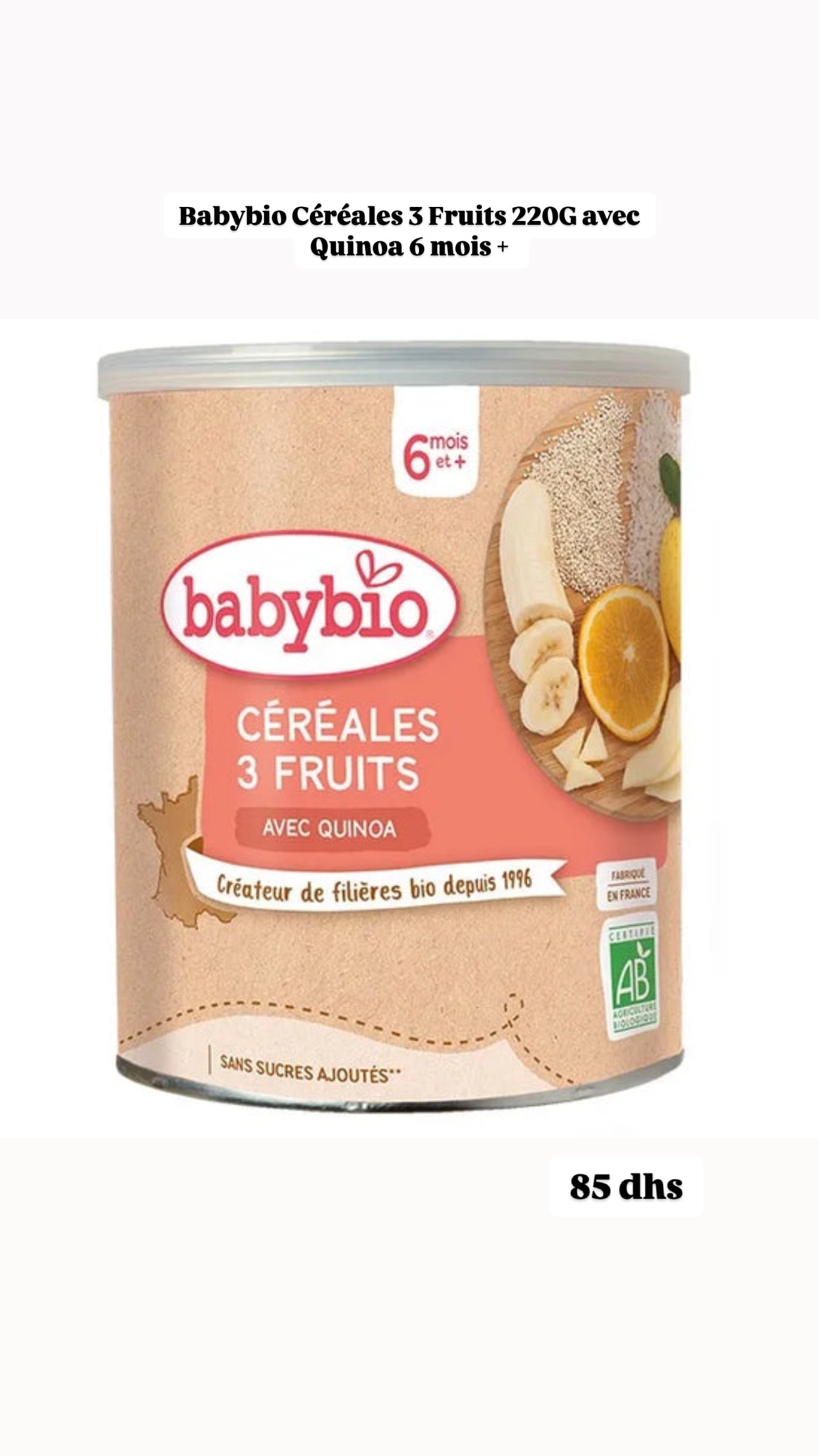 BABYBIO Céréales 3 Fruits 220G avec Quinoa 6 mois +