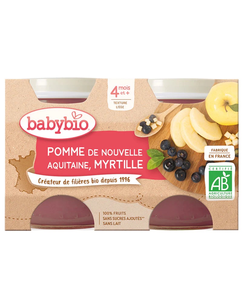BABYBIO Petit Pot Pomme de Nouvelle-Aquitaine & Myrtille 2x 130g. 4 mois +