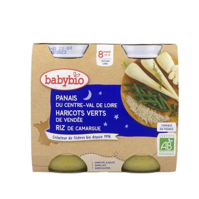 BABYBIO bonne nuit panais, haricots verts, riz 2x200g. 8 mois +