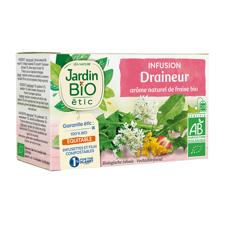 L’association bienfaisante et fruitée de la reine des prés et des feuilles de pissenlit contribue aux fonctions d’élimination et favorise ainsi le drainage de l’organisme.